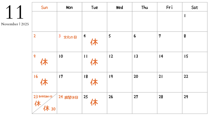 毎週火曜日および第2、3、4、5日曜日(第1日曜日は営業)