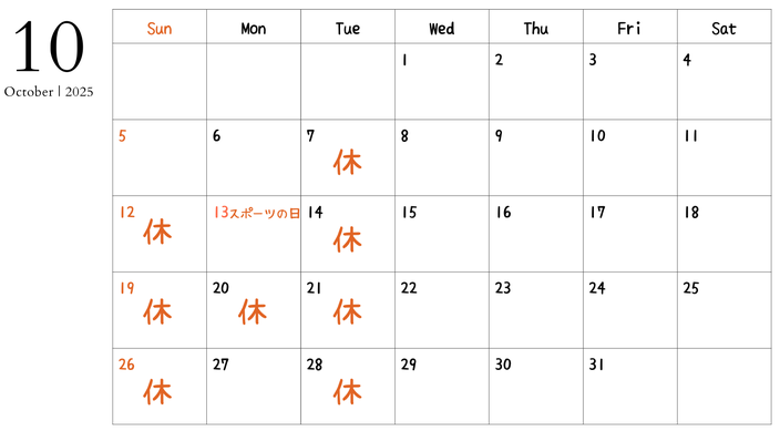 このたび、スタッフの労働環境改善のため誠に勝手ながら以下の通り、定休日を一時的に変更させていただきます。
